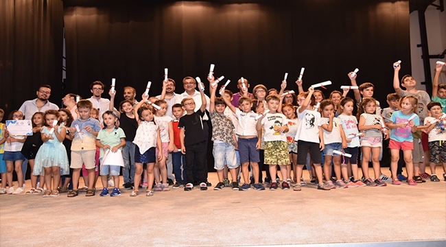 Kursları başarılarıyla tamamlayan öğrencilere sertifikalarını takdim eden Başkan Bülent Öz, çocukları ve onları hazırlayan öğretmenleri tebrik etti.
