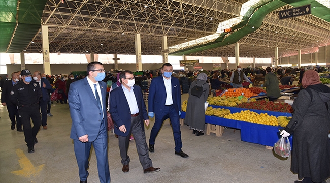 Çan Belediyesi kapalı pazar yerlerinde alınan önlemler kamu yöneticileri tarafından yerinde incelendi.