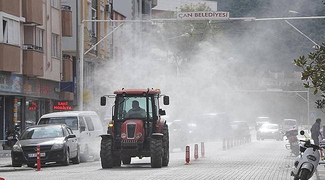 Çan Belediyesi artan Covid 19 vakaları nedeni ile ilçeyi baştan aşağı ilaçladı.