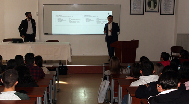 Seminerde öğrencilere faydalı ve akıcı sunum yapan konuşmacılar, öğrencilerin sorularını cevaplayarak Lojistik bölümünün şuan ki çalışma düzeyinden ve gelecekte öğrencileri nasıl bir lojistik iş hayatının beklediğinden bahsetti.
