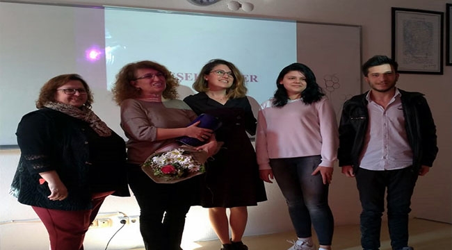 Çan MYO El Sanatları Bölüm Başkanı Dr. Öğretim Üyesi Tuba Korkmaz, Sosyal Hizmet Uzmanı Nigar Etizer Karacık’a katılımından dolayı teşekkür ederek çiçek takdiminde bulundu.