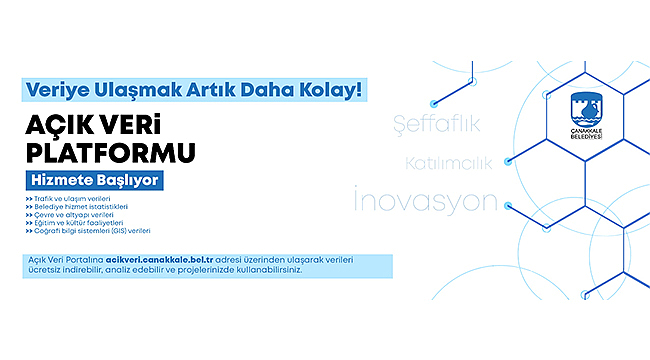 Çanakkale Belediyesi, şeffaf yönetim anlayışı ve dijital dönüşüm hedefleri doğrultusunda "Açık Veri Platformu"nu hizmete sunuyor.
