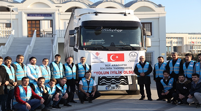 Çanakkale Merkez Tacettin Aslan Camiinde Salı günü yapılan uğurlama töreniyle, ihtiyaç sahibi aileler için hazırlanan yardım malzemeleri İdlib'e doğru yola çıktı.