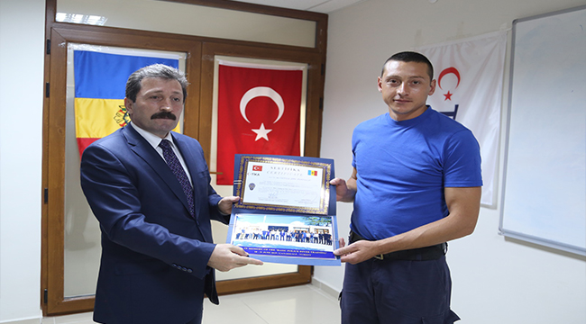 Yapılan konuşmaların ardından; Vali Orhan TAVLI, İl Emniyet Müdürü Celal Sel, Çanakkale Deniz Polisi Eğitim Merkezi Müdürü İsmail YILMAZ, Türk İşbirliği ve Koordinasyon Ajansı Başkanlığı (TİKA) koordinatörü Nermin Baştemur ve Kurs sorumlusu 3. Sınıf Emniyet Müdürü Alper Tuğbay tarafından Temel Sualtı Dalış Kursunu başarıyla tamamlayan Moldova’lı polislere sertifikaları verildi.