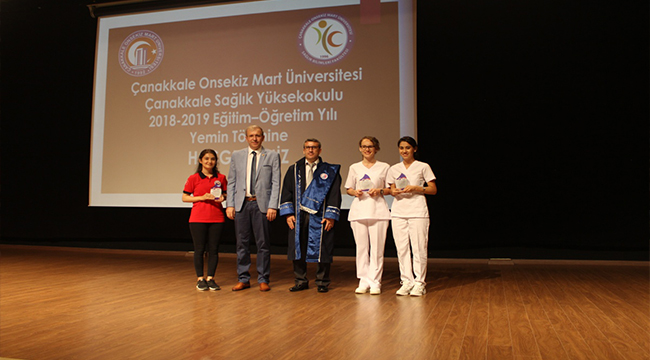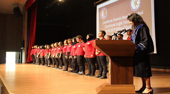 Bu yıl Sağlık Bilimleri Fakültesi’ne dönüştürülen Çanakkale Onsekiz Mart Üniversitesi (ÇOMÜ) Çanakkale Sağlık Yüksekokulu'nun 2018-2019 Eğitim- Öğretim yılı mezunlarının yemin töreni İÇDAŞ Kongre Merkezi'nde gerçekleştirildi.