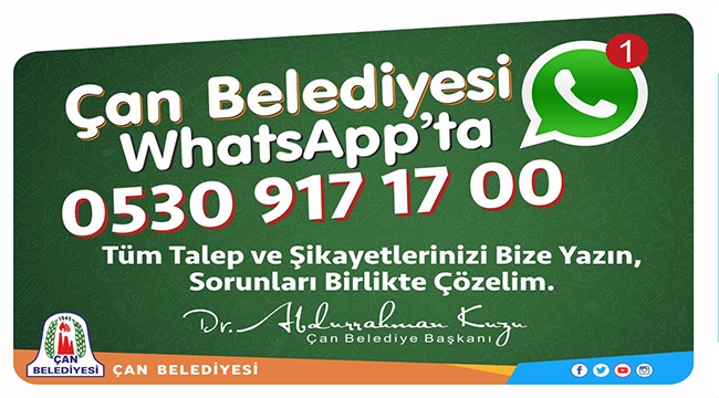 Çan Belediyesi’nce çok kısa bir süresi önce hayata geçirilen whatsapp iletişim hattıyla Çan halkı bir nevi belediyecilik hizmetlerine katkı sağlamaya başladı.