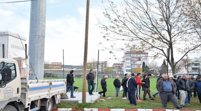 Çardak'ta futbol sahasına kurulacak baz istasyonuna tepki