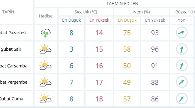 Meteoroloji Genel Müdürlüğünden alınan tahminlere göre, hava sıcaklığı ülke genelinde hissedilir derecede (4 ila 8) artacak, batı bölgelerinde mevsim normalleri üzerinde, diğer yerlerde mevsim normalleri civarında seyredecek.