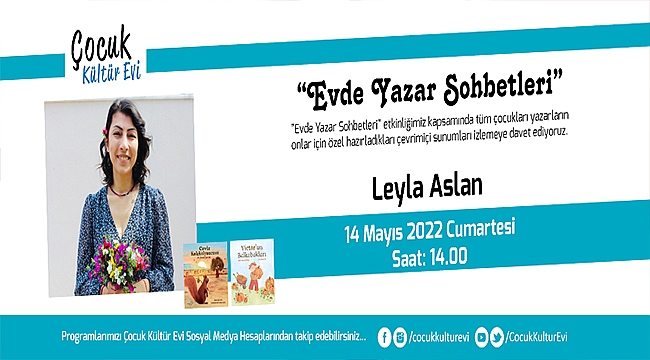 “Evde Yazar Sohbetleri” başlığıyla çevrim içi olarak yürütülen ve Çocuk Kültür Evi YouTube kanalı ile sosyal medya hesapları üzerinden paylaşıma açılan video sohbetlerin mayıs ayı konuğu Buğday Derneği Yönetim Kurulu Başkanı, Ekolojik Pazar Proje Koordinatörü ve yazar Leyla Aslan olacak.