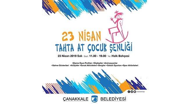 Çanakkale Belediyesi tarafından 23 Nisan Ulusal Egemenlik ve Çocuk Bayramı kapsamında organize edilen etkinlik, 23 Nisan 2019 Salı günü 11.00-19.00 saatleri arasında Halk Bahçesinde gerçekleşecek. Tahta At Çocuk Şenliği’nde şişme oyun parkları, söyleşiler, animasyonlar, sahne gösterileri, atölyeler, sanat aktiviteleri, sergiler, sokak oyunları ve spor aktiviteleri gibi birbirinden renkli etkinlik ve eğlenceli oyunlar çocuklarımızı bekliyor…