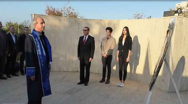 Türkiye Cumhuriyeti’nin kurucusu Büyük Önder Mustafa Kemal Atatürk, ölümünün 81. Yıldönümünde Çanakkale Onsekiz Mart Üniversitesi Terzioğlu Yerleşkesi’ndeki Atatürk Anıtı önünde düzenlenen törenle anıldı.