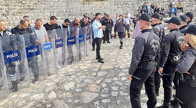 Çanakkale Onsekiz Mart Üniversitesi (ÇOMÜ) Koruma ve Güvenlik Şube Müdürlüğü personeline, Çanakkale İl Emniyet Müdürlüğü Güvenlik Şube Müdürlüğü tarafından "Toplumsal Olaylara Müdahale Esasları" konulu eğitim verildi.