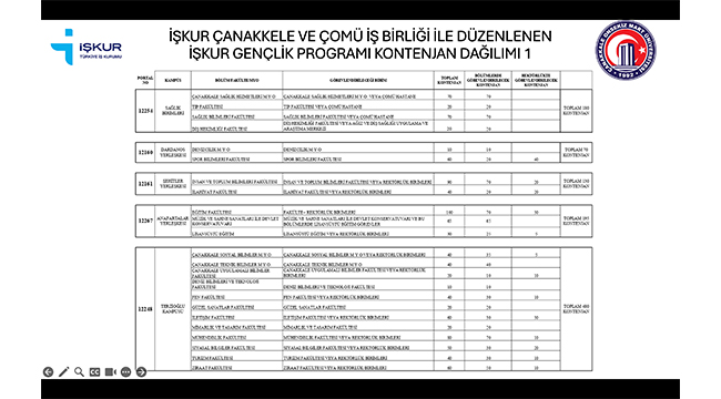 Çanakkale Çalışma ve İş Kurumu İl Müdürlüğü ile Çanakkale Onsekiz Mart Üniversitesi iş birliğinde yürütülen İŞKUR Gençlik Programı kapsamında, üniversite öğrencilerinin iş dünyasıyla tanışmaları ve mesleki deneyim kazanmaları amacıyla yeni dönem başvuruları başladı.