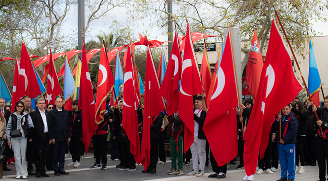 Cumhuriyet Meydanı’nda saat 09.30’da başlayan programa İl Milli Eğitim Müdürü Mine Hayta, kamu kurumlarının temsilcileri, gaziler, sivil toplum kuruluşları, siyasi parti temsilcileri ve çok sayıda öğrenci katıldı. Tören, İl Milli Eğitim Müdürü Hayta ve öğrencilerin Atatürk Anıtı’na çelenk sunmasıyla başladı. Saygı duruşu ve İstiklal Marşı’nın ardından program devam etti.