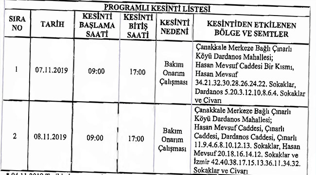Öte yandan, yine Uludağ Elektrik Dağıtım A.Ş. Çanakkale İşletme Bakım Mühendisliğinden yapılan açıklamaya göre;