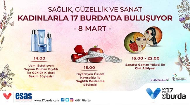Esas Gayrimenkul tarafından hayata geçirilen Esas 17 Burda AVM, 8 Mart ‘‘Dünya Kadınlar Günü’’nü birbirinden keyifli etkinliklerle kutluyor.