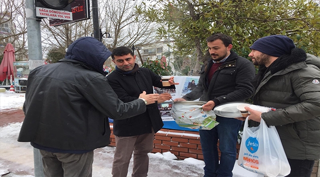 Kepez’de kar yağışı üzerine kuşlara yem, kedi ve köpeklere mama dağıtan Gökhan Bayram, duraklarda bekleyenlere çorba, kar küreyen ve tuzlama yapanlara baklava ikram etti.