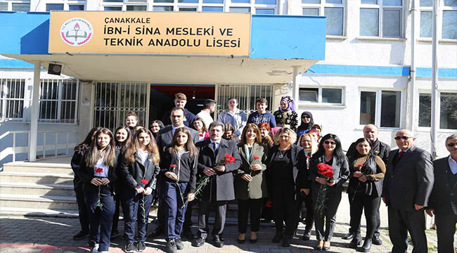 İlk olarak İbni-i Sina Mesleki ve Teknik Anadolu Lisesini ziyaret ederek burada öğretmenlerle bir araya gelen Vali Orhan TAVLI ve eşi Ayşe TAVLI, çalışan öğretmenlerin kadınlar gününü kutlayarak karanfil verdiler.