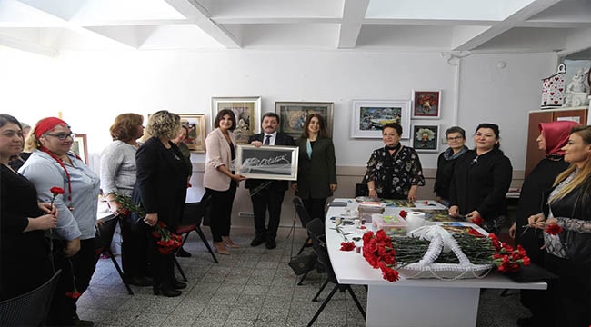 Ardından, 25 Atölyede 320 kursiyerin eğitim aldığı Halk Eğitim Merkezi Ek Binasında; el sanatları, resim, giyim, iğne oyası, heykel, öz bakım kursları verilen atölyeleri ve Okuma yazma kurslarının yanı sıra yabancılara Türkçe eğitim verilen ve kursiyerlerin çocuklarının da güzel vakit geçirdikleri etkinlik odasını da ziyaret ederek eğitmen ve kursiyerlerle görüşen Vali Orhan TAVLI ve eşi Ayşe TAVLI eğitmen ve kursiyerlerin 8 Mart Dünya Kadınlar Gününü kutlayarak karanfil verdiler.