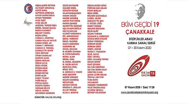 Bu sene 19. kez düzenlenecek olan Ekim Geçidi isimli disiplinler arası karma sergi, pandemi nedeniyle 7-30 Kasım tarihleri arasında Çanakkale Seramik Müzesi ve ÇOMÜ Güzel Sanatlar Fakültesi’nin internet sayfaları üzerinden takip edilebilecek.