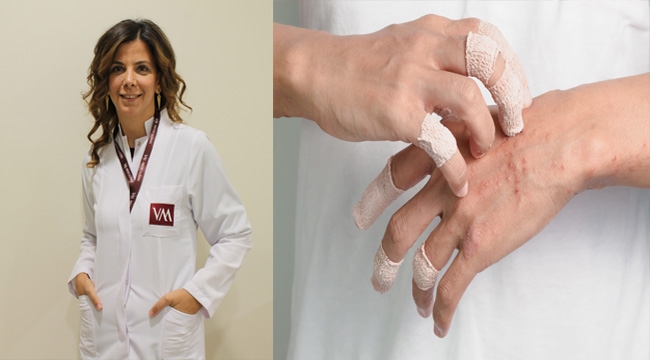 Aşırı su, sabun, deterjan ve hatta havada uçuşan partiküllerin bile el egzamasını ortaya çıkardığını ifade eden VM Medical Park Bursa Hastanesi Cildiye Uzmanı Uzm. Dr. Gökçen Alyamaç, “Su ile aşırı temas, havanın aşırı kuru olması, sabun, deterjan, çeşitli çözücü kimyasallar, temizleme ürünleri, lastik eldiven, hatta deriye uygulanan kişisel bakım ürünleri bile deriyi tahriş edebilir. Katı, sıvı maddelerin yanı sıra, havada uçuşan partiküller bile el egzamasına sebep olabilir. El egzaması genellikle el sırtı ve parmak aralarında olup, el bileğini aşmaz. Deride kuruluğun yanı sıra kızarıklık, kaşıntı ve gittikçe yayılan kabuklu döküntüler ortaya çıkabilir. Ellerde çatlaklar ve ağrı olabilir” dedi.