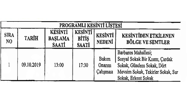 Uludağ Elektrik Dağıtım A.Ş. Çanakkale İşletme Bakım Mühendisliğinden yapılan açıklamaya göre; görsellerde belirtilen tarihte ve belirtilen yerlerde elektrik kesintisi uygulanacaktır.