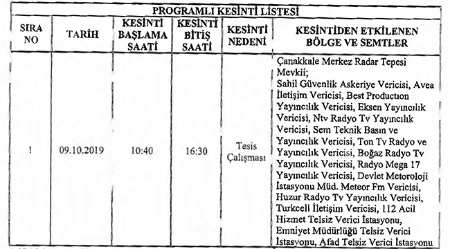 Yine Uludağ Elektrik Dağıtım A.Ş. Çanakkale İşletme Bakım Mühendisliğinden yapılan açıklamaya göre;