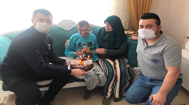 Biga Belediyesi, 26 yaşındaki engelli Ahmet Caner Kurtçu’nun doğum gününü evine ulaştırdıkları pastayla kutladı.