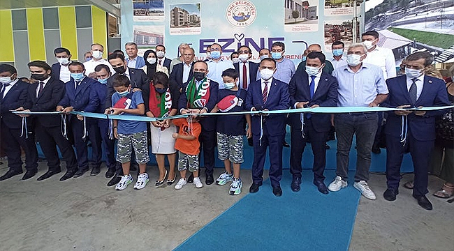 Yapılan konuşmaların ardından Ezine Belediyesi Spor Kompleksi ve Yarı Olimpik Yüzme Havuzu ve Ezine Belediyesi Zümrüdüanka 84 adet konut temelleri ile Ezine Belediyesi Kapalı Pazar Yeri, Ezine Belediyesi 22 Eylül Sosyal Tesisleri, Ezine Belediyesi İlayda Sevinç Kreş ve Gündüz Bakım Evi açılışları dualarla ve hayırlı olsun temennileriyle gerçekleştirildi.