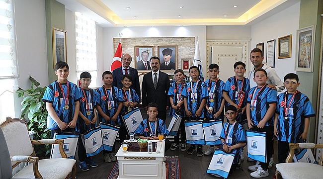 Ezine Gazi Ortaokulu Müdürü Oral DİNÇKAN ve Beden Eğitimi Öğretmeni Erdi TAN’ın da bulunduğu ziyarette Vali İlhami AKTAŞ, Hokey takımının öğrencileri Berkay ÇAKIR, Metin GÜNEŞ, Kuzey BAKIR, Enes YÜKSEL, Eymen ÇETİN, Musa OLUŞ, Davut KILIÇ, Umut KILIÇ, Fatih AYBATTI, Ayberk ÇAKMAKÇI, Muhammet BAKIR ve Buğra UYSAL ile bir süre görüşerek, katıldıkları müsabakalar ve çalışmalar hakkında bilgi aldı.