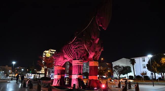Çanakkale Belediyesi tarafından 15 Ekim Meme Kanseri Farkındalık Günü kapsamında Truva Atı ve Saat Kulesi’ni pembe renkte ışıklandırıldı.