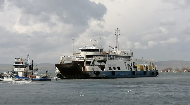 Çanakkale genelinde etkili olan lodos fırtınası nedeniyle Lapseki Çardak iskelesinden Gelibolu iskelesine doğru hareket eden bir feribot karaya oturdu.