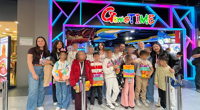 Film sonrasında alışveriş merkezinin yemek alanında çocuklarla birlikte yemek yiyen üniversite öğrencileri, daha sonra miniklerle birlikte yemek alanı içinde bulunan oyun e eğlence merkezi Gametime’da eğlenmeye gitti. Yaklaşık 2 saat boyunca yuvada kalan çocukları ücretsiz ağırlayan Gametime eğlenceli görüntülere sahne oldu. Miniklerle tek tek ilgilenip onlarla oyunlar oynayan üniversiteliler, baştan sona tüm organizasyonu kendilerini organize ettiler.
