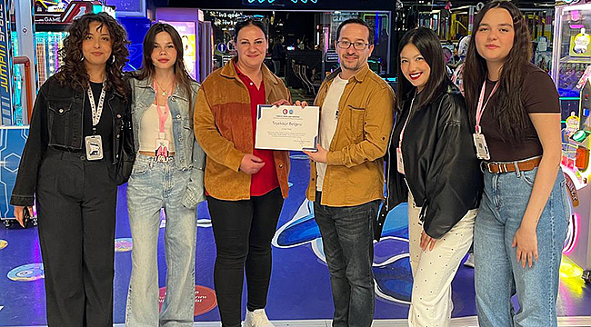 Sosyal sorumluluk projesi sonunda sponsor firmaların yetkilileri ile Psikolog Tekinel’e sertifikaları ders sorumlularından Öğr. Gör. Onur Bayram takdim etti.