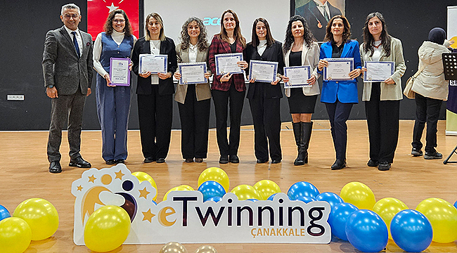 Okul Müdürü Murat Karakaya, gönüllülük esasına dayalı ulusal ve uluslararası eTwinning projeleri kapsamında öğretmenler Ayşe Gülten, Ayşen Erarslan, Çağlayan Güvercin Tağı, Filiz Gök, Münevver Tunç, Özge Demir ve Selda Uslucan’ın Ulusal Ajans tarafından Avrupa Kalite Etiketi ile ödüllendirildiğini belirterek öğretmenleri tebrik etti.