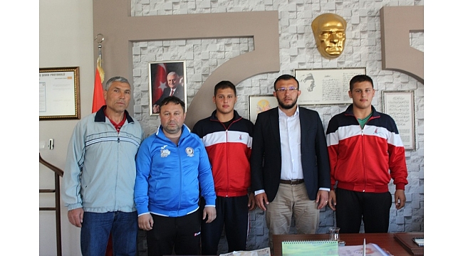 Umurbey Belediyesi Güreş Spor Kulübü ikiz güreşçileri ve antrenör Cem Özden Belediye Başkanı Sami Yavaş'ı makamında ziyaret etti.