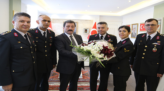 Jandarma Teşkilatının 180. Kuruluş yıldönümü nedeniyle İl Jandarma Komutanı Emrullah Büyük, 116. Jandarma Eğitim Komutanı Ünal Hayal, Çanakkale Jandarma Özel Eğitim Merkezi Komutanı Sadık Gülecen ve İl Jandarma Komutanlığı Personeli Vali Orhan TAVLI’yı ziyaret ettiler.
