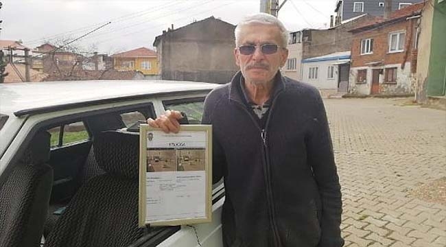 Lapseki'de, otomobiliyle kırmızı ışıkta geçtiği için 286 TL trafik cezası kesilen Ramazan Koç (75), Trafik Kural İhlali Tespit Formu'nu ilk cezası olması nedeniyle hatıra kalsın diye çerçeveletip, evinin odasına astı. Koç, "1974 yılında ehliyet aldım ve ilk kez ceza yedim" dedi.