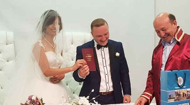 Nikah salonunda çiçeği burnunda çiftelerin heyacanı gözlerinden okunur iken,çifti yakınlarının tebrik etmesi ile son buldu.