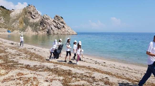 İLKOKUL ÖĞRENCİLERİNDEN SAHİL TEMİZLİĞİ