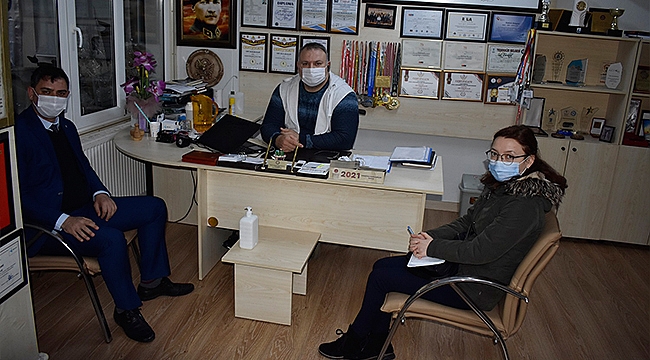 Ziyarette Çanakkale Çalışma ve İş Kurumu İl Müdürü Vekili Mehmet Uğur Yavuz, İş ve Meslek Danışmanı Ebru Şahin ve Türkiye Sakatlar Derneği Çanakkale Şubesi Başkanı Ümit Burunlular bir araya geldi.