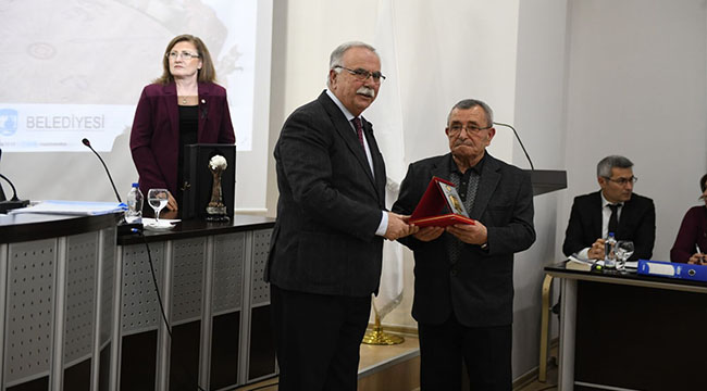 İSMAİL USTA'YA MECLİS TOPLANTISINDA PLAKET VERİLDİ