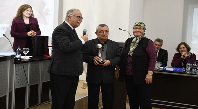 Çanakkale Seramiğinin yaşatılması ve tanıtılmasında verdiği büyük emekler nedeni ile İsmail Usta’ya teşekkürlerini ileten Başkan Gökhan, plaket ve çiçek takdiminde bulundu.