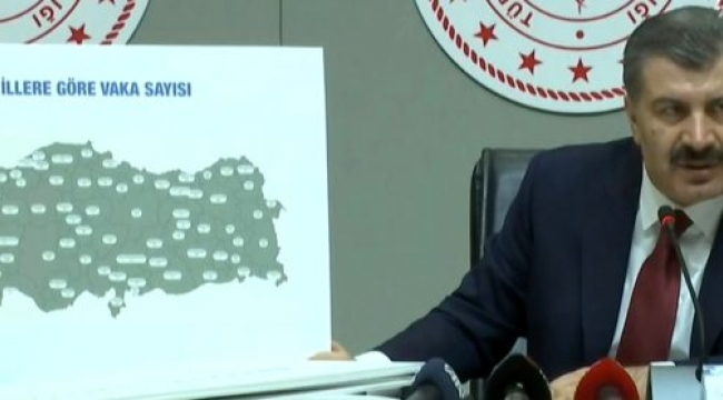 Sağlık Bakanı Fahrettin Koca, Bilim Kurulu toplatısı sonrası açıklama yaptı. Koca, koronavirüs vakave ölüm sayılarını gösteren il bazlı bir harita paylaştı.