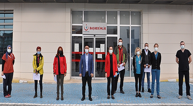 Başhekim Op Dr. Ufuk Tali sağlık personelimizin gösterdikleri özverili çalışmalarından dolayı gurur duyduğunu belirterek teşekkür belgelerini takdim etti.