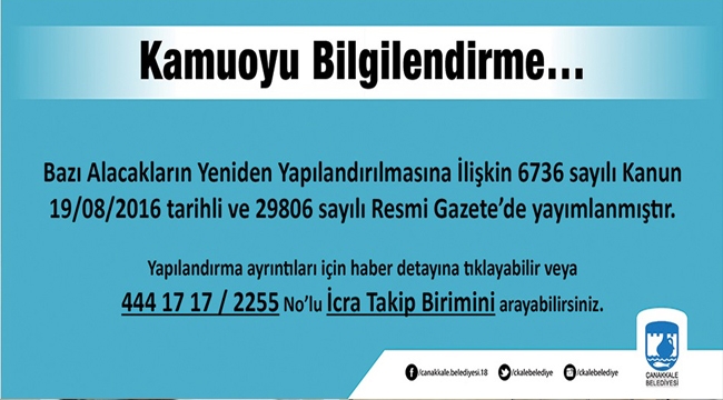 Detaylı bilgi için 444 17 17/2255 numaralı İcra ve Takip Birimi ile irtibata geçebilirsiniz.