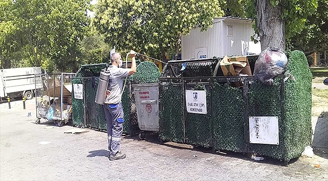 Çanakkale Belediyesi Temizlik İşleri Müdürlüğü ekiplerince Dardanos ve Güzelyalı’nın yanı sıra kent merkezinde de gerçekleştirilen karasinekler ile mücadele çalışmaları kapsamında, çöp konteynerleri yıkanarak dezenfekte ediliyor. Çöp konteynerlerinde gerçekleştirilen dezenfeksiyonun yanı sıra biyosidal ürün uygulayıcı personeller tarafından da ilaçlama çalışması gerçekleştiriliyor.