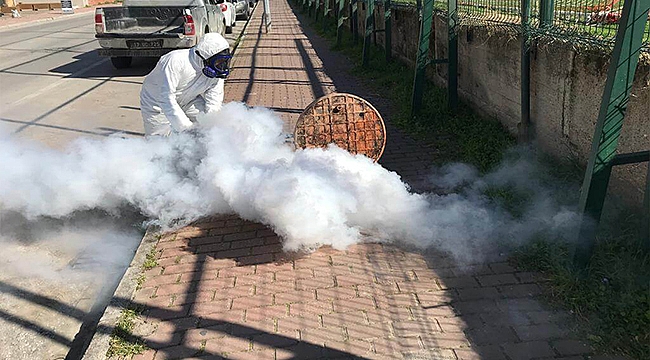 Kent genelinde gerçekleştirilen çalışma kapsamında, sezona yönelik kışlak mücadelesi doğrultusunda yağmur ve kanalizasyon hatlarında biyosidal ürün ile sıcak sisleme çalışması gerçekleştiriliyor.