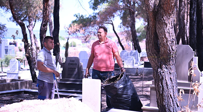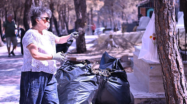 “Geçmişe Saygı” kapsamında düzenlenen çalışmada, Güzelyalı Köy Mezarlığı gönüllüler, Temizlik İşleri Müdürlüğü personeli ve yangınlarda özveriyle mücadele eden İtfaiye Müdürlüğü ekibi ile birlikte titizlikle temizlendi.