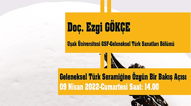 Uşak Üniversitesi Güzel Sanatlar Fakültesi Geleneksel Türk Sanatları Bölümü Öğretim Görevlisi Doç. Dr. Ezgi Gökçe’nin konuşmacı olarak katılacağı etkinlik, 9 Nisan 2022 Cumartesi günü saat 14.00’de Seramik Müzesi’nde gerçekleştirilecek.
